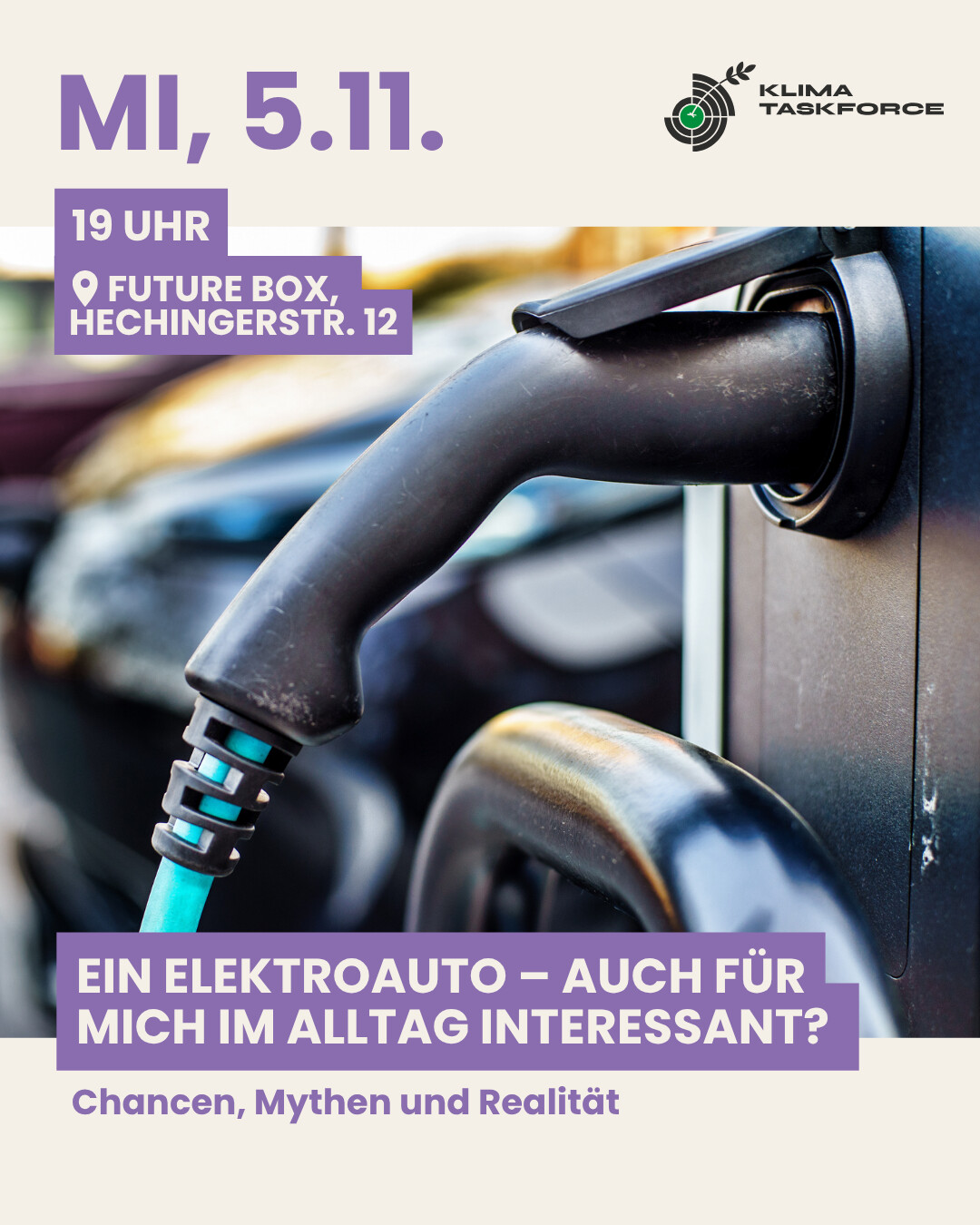 Unter dem Titel „Ein Elektroauto – auch für mich im Alltag interessant? Chancen, Mythen und Realität“ lädt die Klima-Taskforce zum Informationsabend ein.