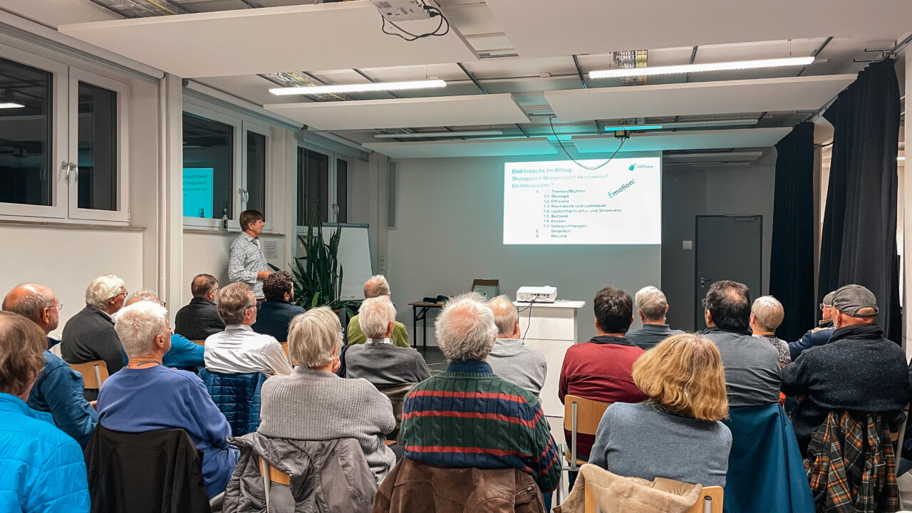 Hans Thaler von der Klima-Taskforce Aichtal führte mit einem sehr fundierten Impulsvortrag in das Thema ein und stellte zahlreiche Zahlen, Daten und Fakten vor. Dabei wurden nicht nur aktuelle Zahlen und Studien vorgestellt, sondern auch viele Vorurteile entkräftet und die Vor- und Nachteile von Verbrennungsmotoren und Elektrofahrzeugen anschaulich gegenübergestellt – von Anschaffungskosten über Wartung bis zu Umweltbilanz und Fahrkomfort.